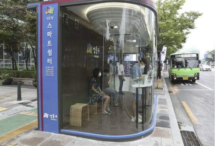 韓國使用高科技的公共汽車候車室防止Covid-19的傳播。 這10個 “智能候車亭 “配備了用于檢查溫度的外部熱像儀和內(nèi)部的紫外線消毒燈。 沿著首都首爾市城東區(qū)的主要公交路線設置了太陽能發(fā)電的候車室。 乘客必須站在自動熱像攝影機的前面,只有在檢測到溫度低于99.5F時,滑動門才會打開。 下面還設置了另一個檢測兒童的攝像頭。排污泵
